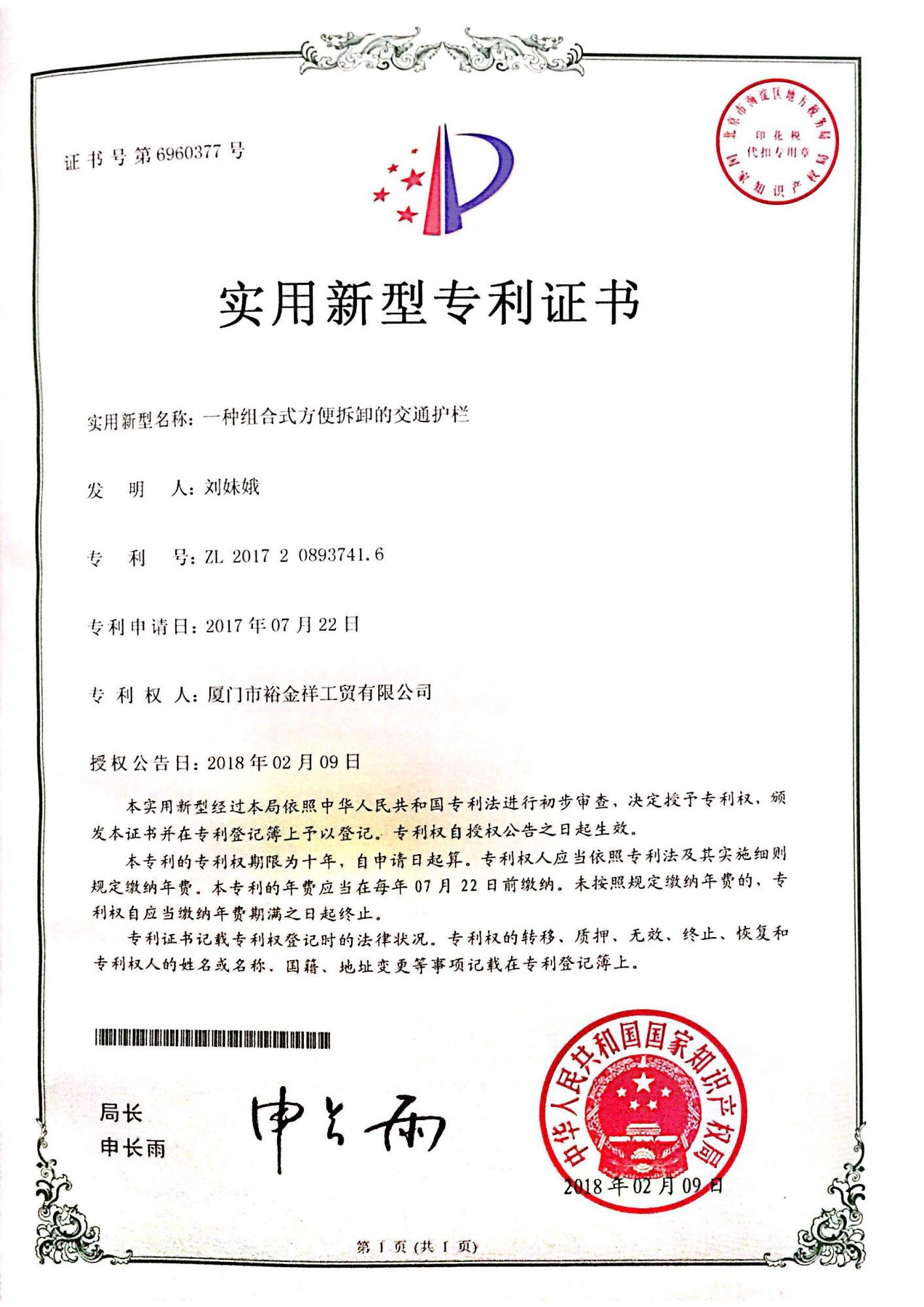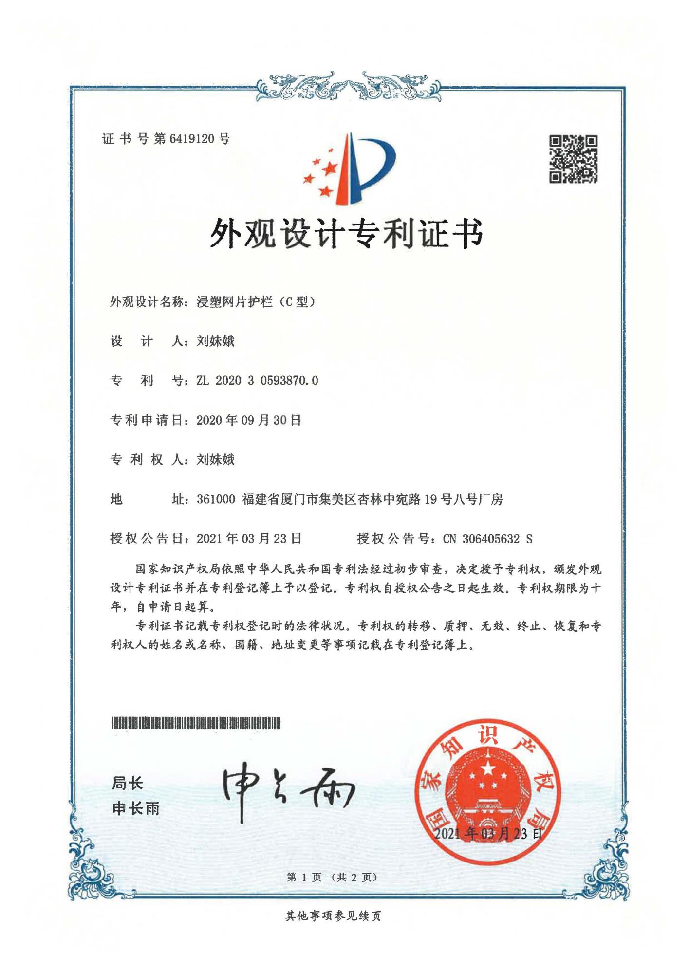 專(zhuān)利證書(shū)-浸塑網(wǎng)片護欄C型