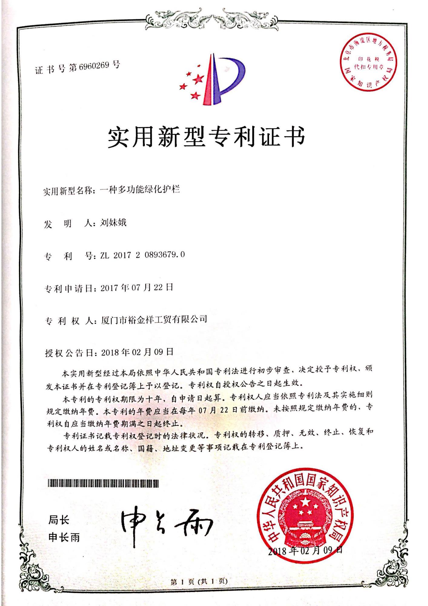 專(zhuān)利證書(shū)-多功能綠化護欄