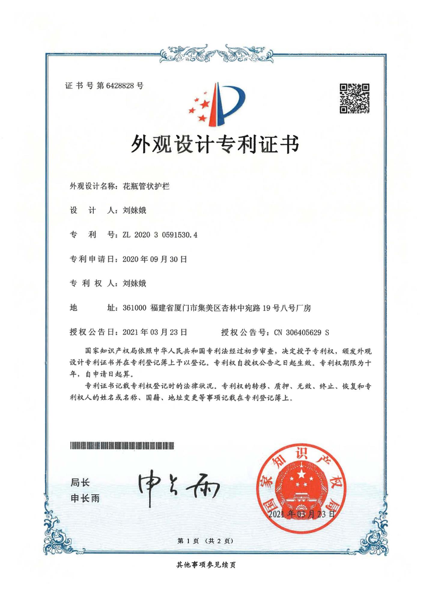 專(zhuān)利證書(shū)-花瓶管狀護欄