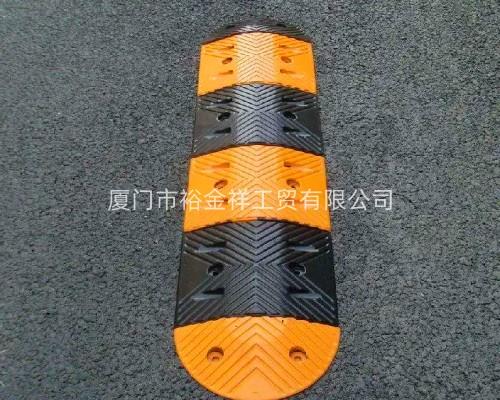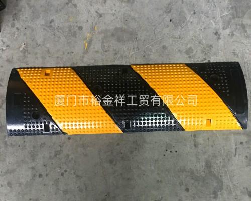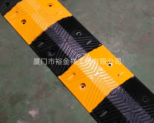 4. 黑黃相間,特別醒目;每塊端節上可安裝高亮度的反光珠,晚上反射光線(xiàn),使司機可以看清減速破的位置