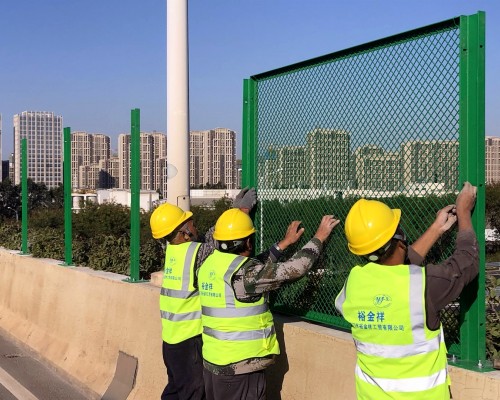 4、橋梁防拋網(wǎng)的網(wǎng)片必須和立柱連接牢靠,網(wǎng)面安裝后平整,無(wú)明顯翹曲和凹凸現象。防拋網(wǎng)施工完畢后,高駐辦將組織相關(guān)人員對防拋網(wǎng)的質(zhì)量和安裝效果進(jìn)行驗收。