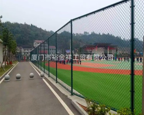運動(dòng)場(chǎng)護欄網(wǎng)采用涂塑絲網(wǎng),網(wǎng)片的面積應為50毫米X 50毫米,運動(dòng)場(chǎng)護欄網(wǎng)的固定零件不能有銳利的邊沿。