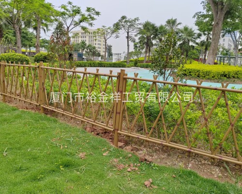 安裝完畢后的圍欄,看上去真的仿佛是竹籬笆一般。它的顏色和質(zhì)感與周?chē)参锓浅O嗨?,與公園的環(huán)境十分協(xié)調。