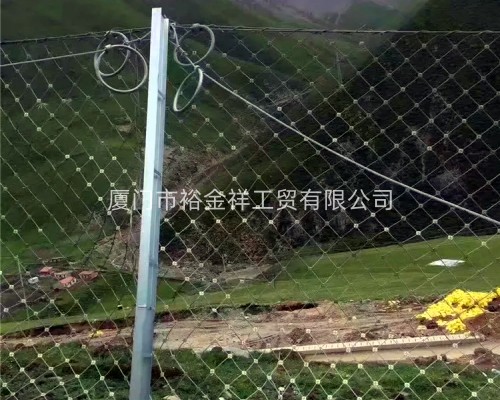 鋼柱和鋼絲繩網(wǎng)連接組合構成一個(gè)整體,對所防護的區域形成面防護,從而阻止崩塌巖石土體的下墜,起到邊坡防護作用。