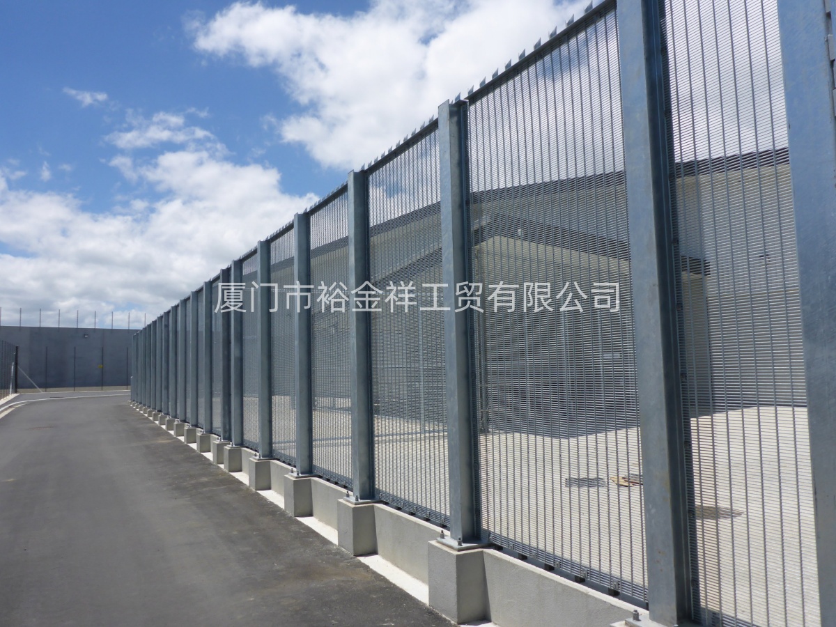 輔助設施:D型單向防攀爬圍欄還配備了一些輔助設施,如安全頂部封口和防割隔斷。這些設計進(jìn)一步增強了圍欄的安全性,防止攀爬者通過(guò)抓取圍欄上方的邊緣進(jìn)行攀爬或用工具割斷或移動(dòng)圍欄。
