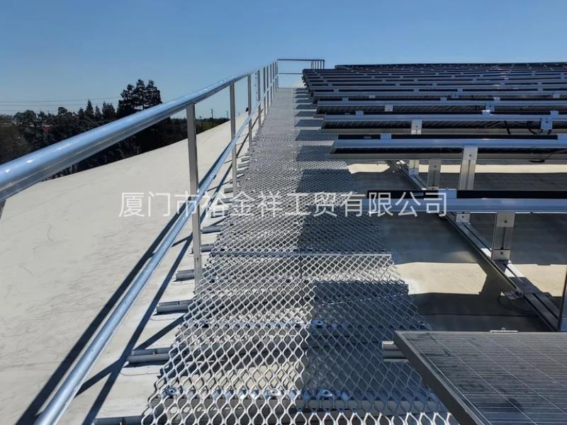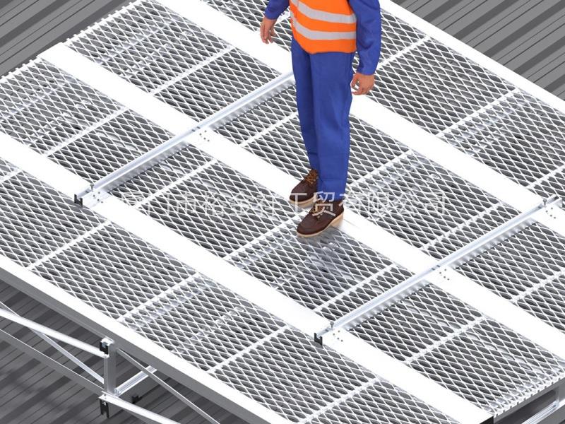 鋼板網(wǎng)步道通常由高強度的鋼材制成,具有卓越的承重和耐久性,常用的材料為低碳鋼板、不銹鋼板、鋁板等,這些材料具有良好的耐腐蝕性和強度,廣泛應用于光伏屋頂步道領(lǐng)域。