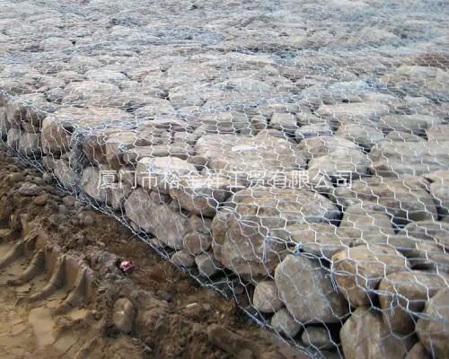 雷諾護墊也叫石籠護墊,格賓護墊,是指由機編雙絞合六邊形金屬網(wǎng)面構成的厚度遠小于長(cháng)度和寬度的墊形工程構件。雷諾護墊中裝入塊石等填充料后連接成一體,成為主要用于水利堤防、岸坡、海漫等的防沖刷結構,具有柔性、對地基適應性的優(yōu)點(diǎn)。
