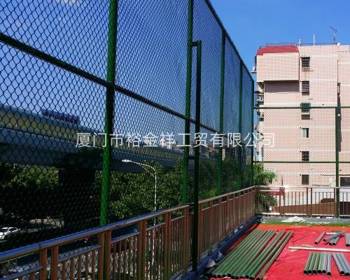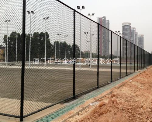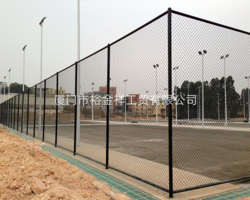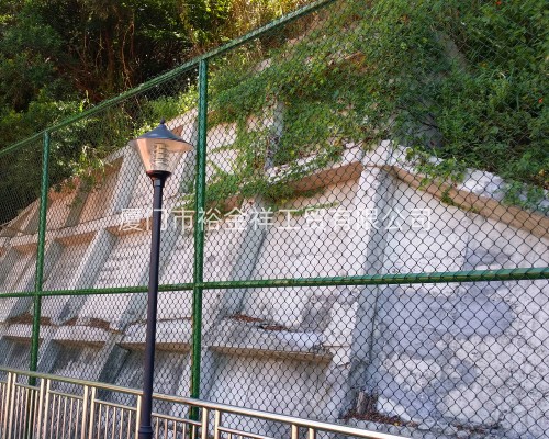 在水泥石屑層施工結束維護過(guò)程中,要將一切預埋件工程悉數裝置結束,施工根底第一層找平地墊時(shí),要按圖紙的規劃要求,將預埋件悉數預埋好,網(wǎng)柱預埋件選用250×250×12mm鋼板,預埋深度為500mm,燈柱選用400×400×14mm鋼板,預埋深度為600mm長(cháng)寬為500×500mm,預埋線(xiàn)管為PVC膠管,預埋深度為120mm,護欄網(wǎng)柱選用專(zhuān)用預埋件進(jìn)行預埋。圍欄網(wǎng)裝置包含立桿、上下橫桿及圍網(wǎng),一切立桿、橫桿、圍欄及門(mén)都選用醇酸紅防銹底漆涂?jì)蓪右陨?,再選用醇酸野外磁漆涂?jì)傻?,顏色為綠色,而且圍網(wǎng)裝置包含扁鐵和一切零配固定件,立桿為:65鋼管,橫桿為50鋼管,圍網(wǎng):包膠圍網(wǎng),網(wǎng)距為45mm×45mm,外徑為3.9mm,內徑為2.5mm高度為4.0m,顏色為綠色,門(mén)是50鋼管架,圍網(wǎng)類(lèi)型與圍網(wǎng)共同。